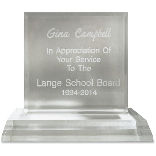 Xstamper - XSTA74 Honor your recipient with a modern, stylish, laser-engraved acrylic award. It is manufactured from polished, hand-cut, high-quality acrylic. Impression size is 5" x 4-3/4" so you have plenty of room for your logo and message.