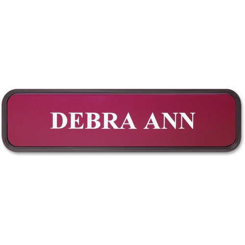 Xstamper - XSTG33 Designer wall sign with rounded corners is perfect for any modern office environment. It has been engineered as a quality interior sign system so it can be used for a door or a wall. Distinctive professional look is perfect for offices, courthouses, schools and warehouses. Choose from more than 35 fonts and more than 30 plastic insert colors. Contact customer service to customize the plastic, 2" x 8" sign with a brown frame.