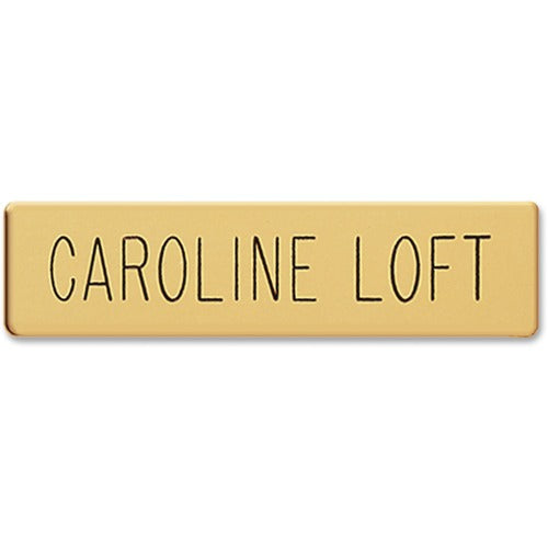 Xstamper - XSTJ50 Keep your uniforms looking sharp with a metal uniform badge. This gold-colored badge with black lettering is perfect for military or any type of name badge. Use for any business uniform. Badge attaches with a military clutch fastener.