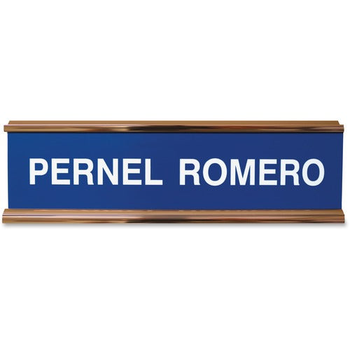 Xstamper - XSTK60 Double-sided desk sign can show off your name or significant message. It does not need a holder. Instead, its easel style sets up easily on your desk. Choose from more than 35 fonts and more than 30 plastic insert colors. Frame is gold-colored. Contact customer service to customize your anodized aluminum, 2" x 8" sign.